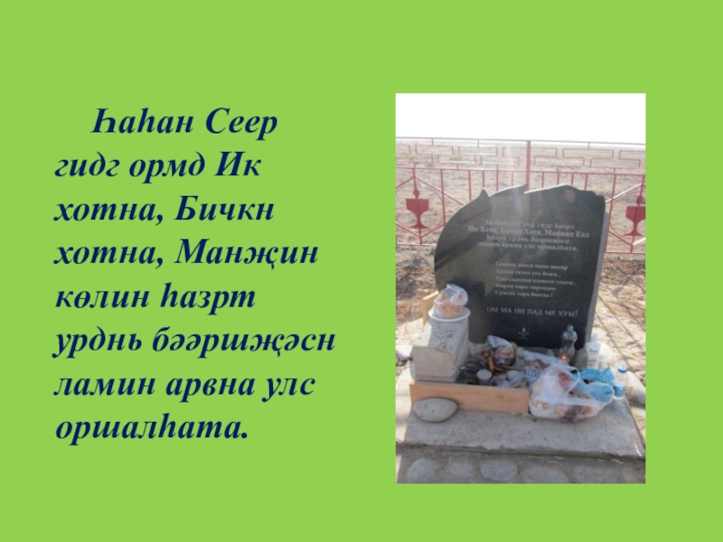 Слайд 7 Һаһан Сеер гидг ормд Ик хотна, Бичкн хотна, Манҗин көлин һазрт