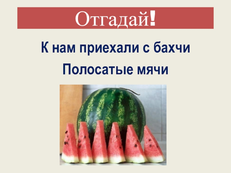 Отгадай!К нам приехали с бахчи Полосатые мячи