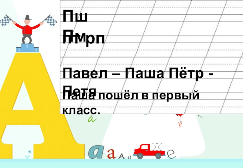 Пш Пмпт рп  Павел – Паша Пётр - Петя  Паша пошёл в первый класс.