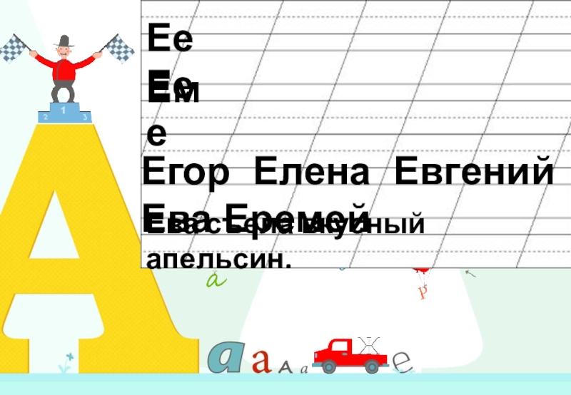 Ее ЕееЕм Егор Елена Евгений Ева Еремей Ева съела вкусный апельсин.
