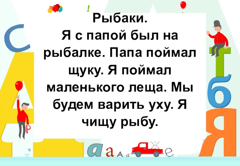 Слайд 11Рыбаки. Я с папой был на рыбалке. Папа поймал щуку. Я поймал