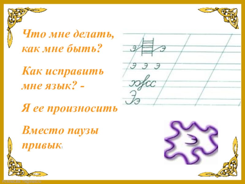 Что мне делать, как мне быть?Как исправить мне язык? -Я ее произноситьВместо паузы привык!