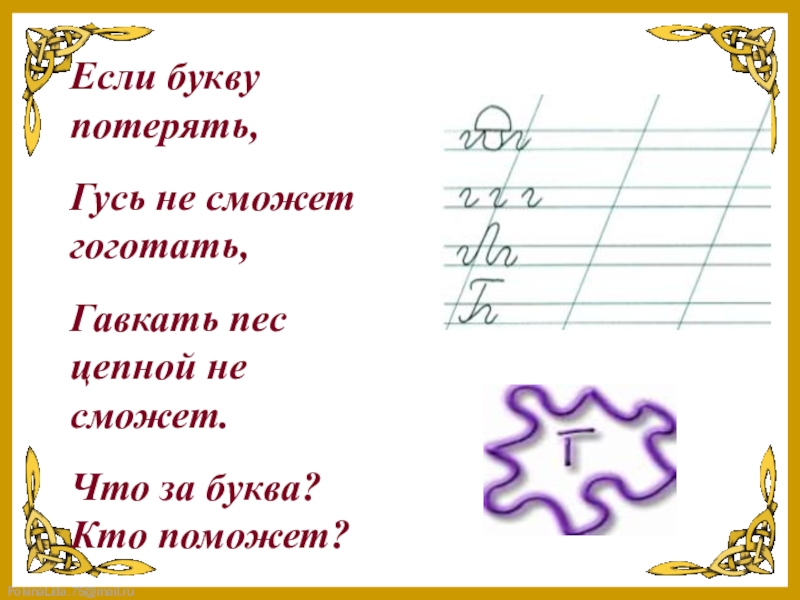 Если букву потерять,Гусь не сможет гоготать,Гавкать пес цепной не сможет.Что за буква? Кто поможет?