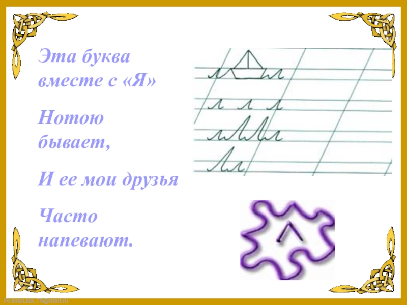 Эта буква вместе с «Я»Нотою бывает,И ее мои друзьяЧасто напевают.