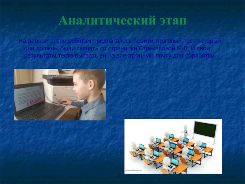 Аналитический этап  На данном этапе ребятам предлагалось пройти итоговый тест который они должны были скачать со