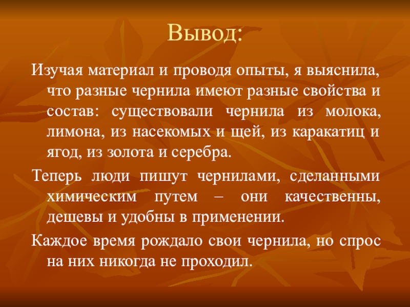 Проследить за развитием чернил с момента возникновения до настоящего времени.