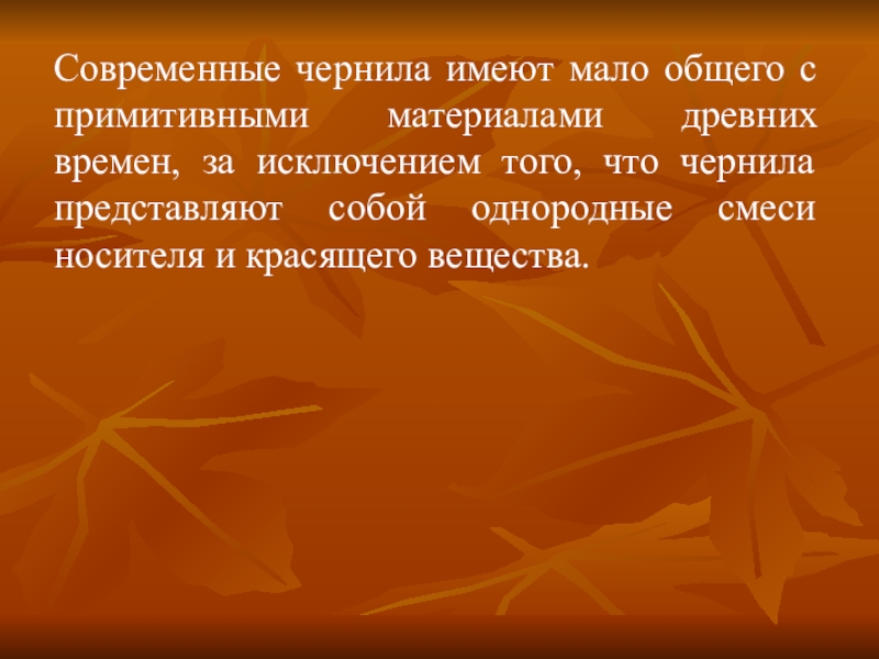 Слайд 10Современные чернила имеют мало общего с примитивными материалами древних времен, за