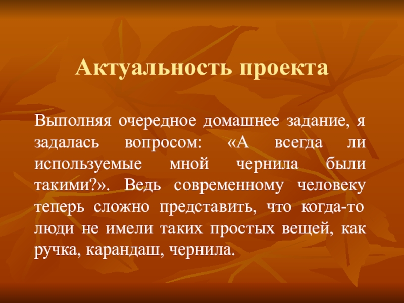 используемые мной чернила были такими?». Ведь современному человеку теперь сложно представить, что когда-то люди не имели таких простых вещей, как ручка, карандаш, чернила.