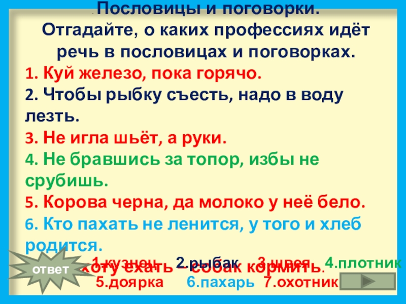 Игра «Отгадай слово – название профессии).