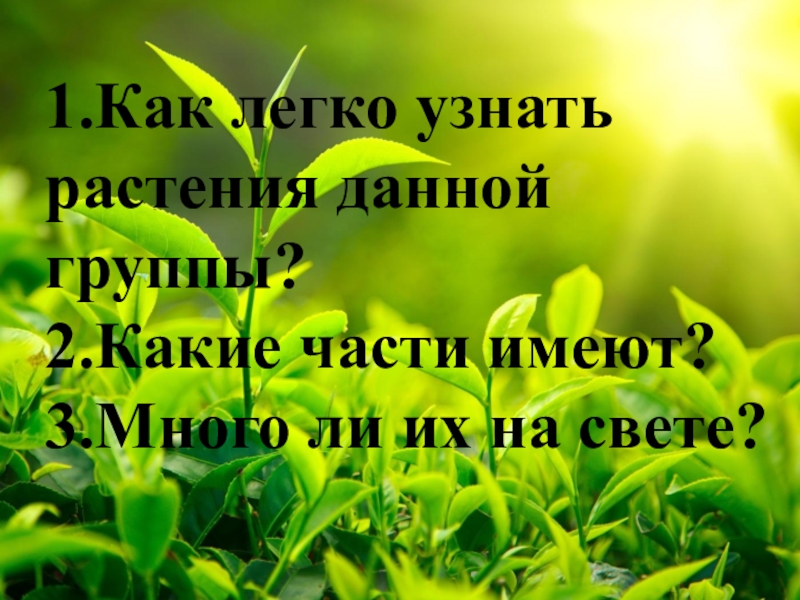 1.Как легко узнать растения данной группы? 2.Какие части имеют? 3.Много ли их на свете?
