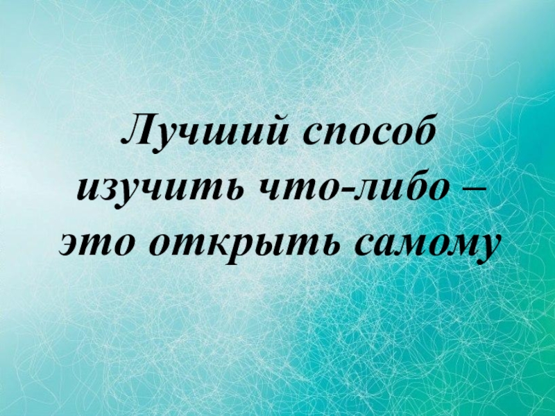 Слайд 2Лучший способ изучить что-либо – это открыть самому