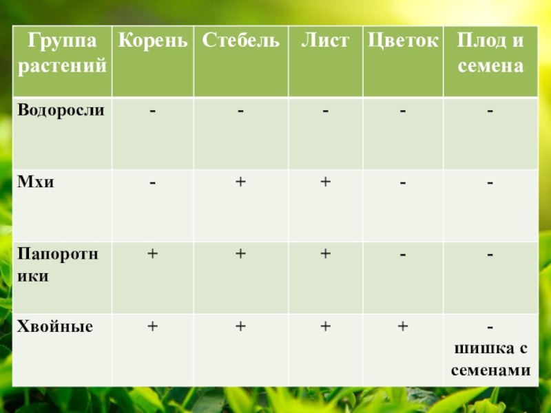 Слайд 71.Как легко узнать растения данной группы? 2.Какие части имеют? 3.Много ли их на