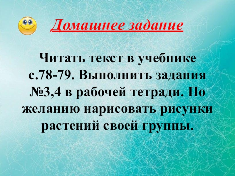 Слайд 20Домашнее задание Читать текст в учебнике с.78-79. Выполнить задания №3,4 в