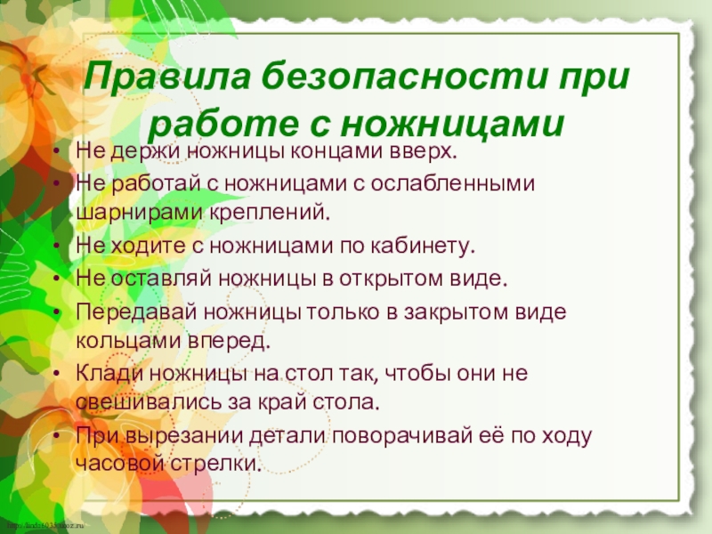 Передавай ножницы только в закрытом виде кольцами вперед.