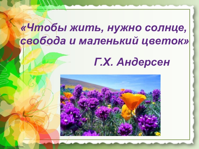 Слайд 4«Чтобы жить, нужно солнце, свобода и маленький цветок»