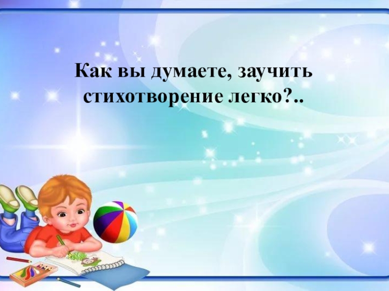Слайд 7Как вы думаете, заучить стихотворение легко?..
