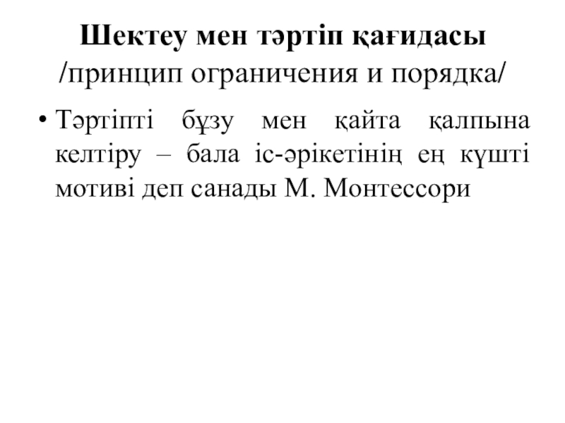 Слайд 7Шектеу мен тәртіп қағидасы /принцип ограничения и порядка/