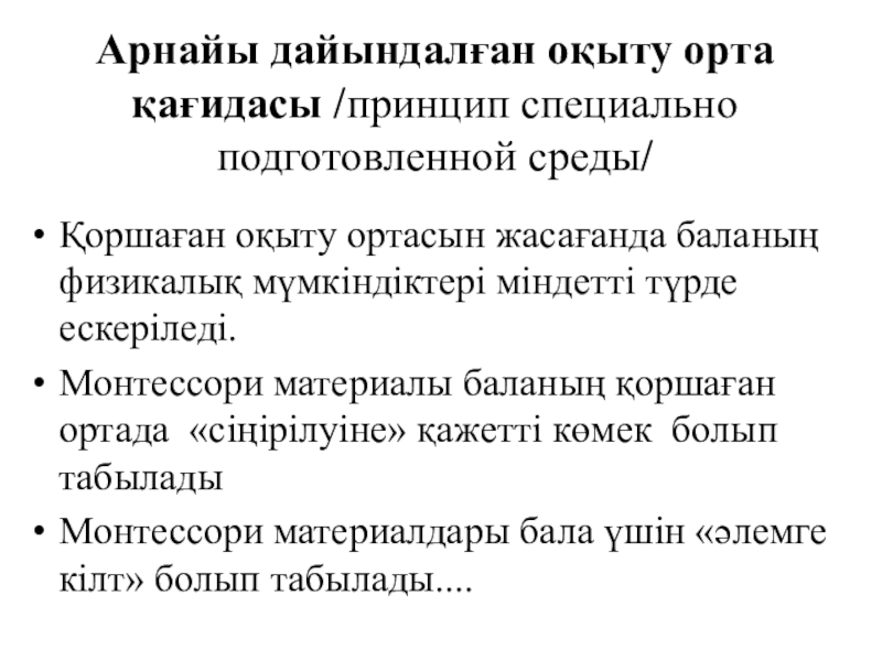 Слайд 5Арнайы дайындалған оқыту орта қағидасы /принцип специально подготовленной среды/