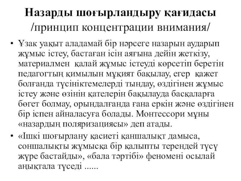 Слайд 4Назарды шоғырландыру қағидасы /принцип концентрации внимания/