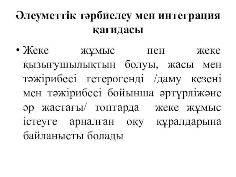 Слайд 8Әлеуметтік тәрбиелеу мен интеграция қағидасы