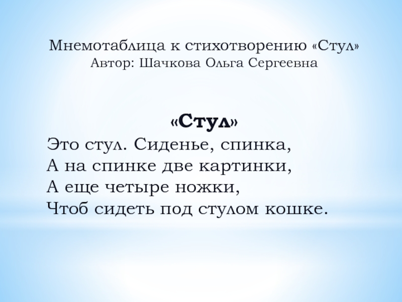 Мнемотаблица к стихотворению «Стул»