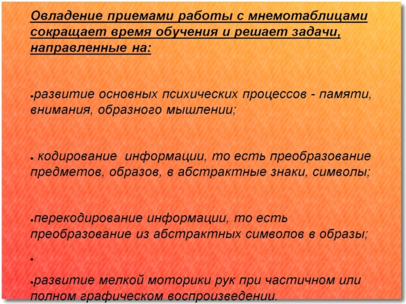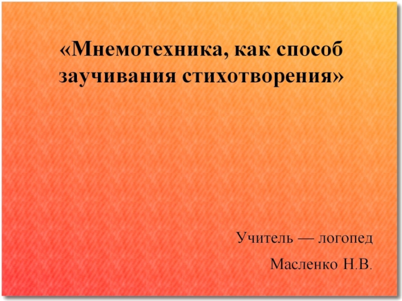 Презентация, доклад на тему Мнемотехника, как способ заучивания стихотворения.