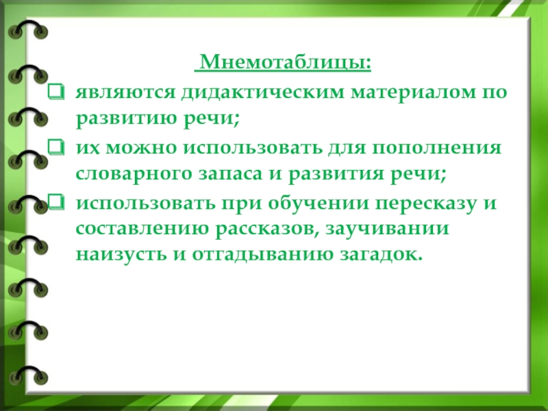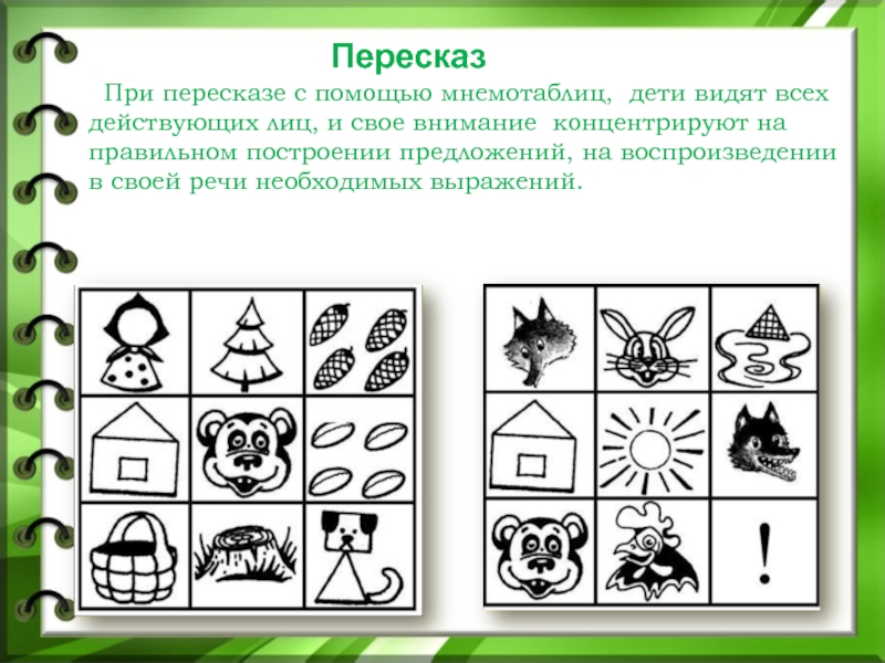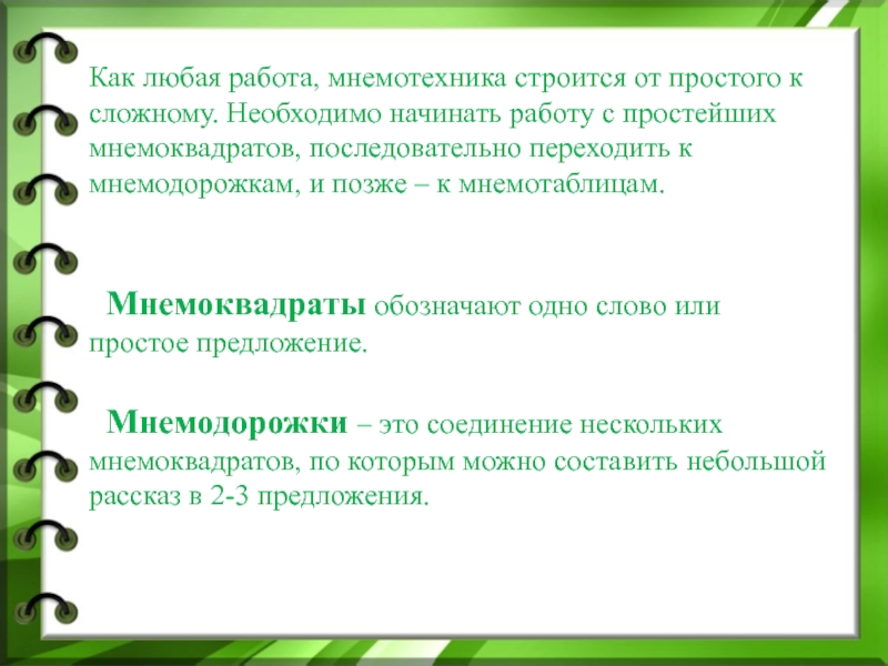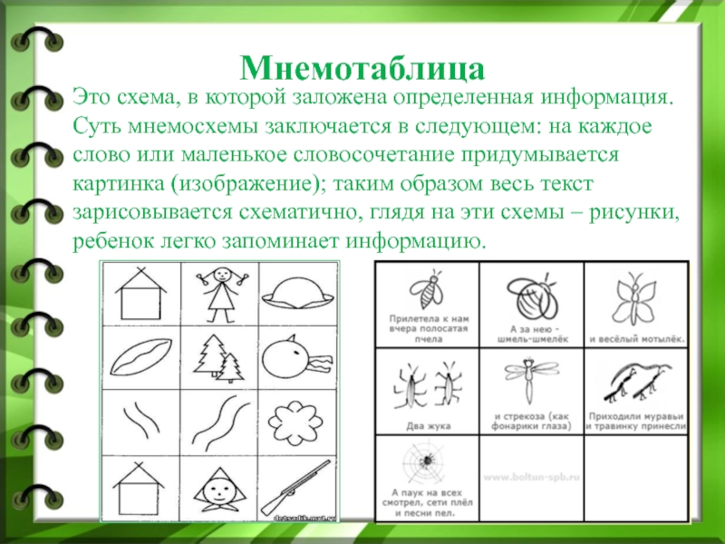 Мнемоквадраты обозначают одно слово или простое предложение.