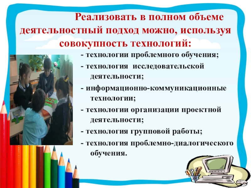 полном объеме деятельностный подход можно, используя совокупность технологий: