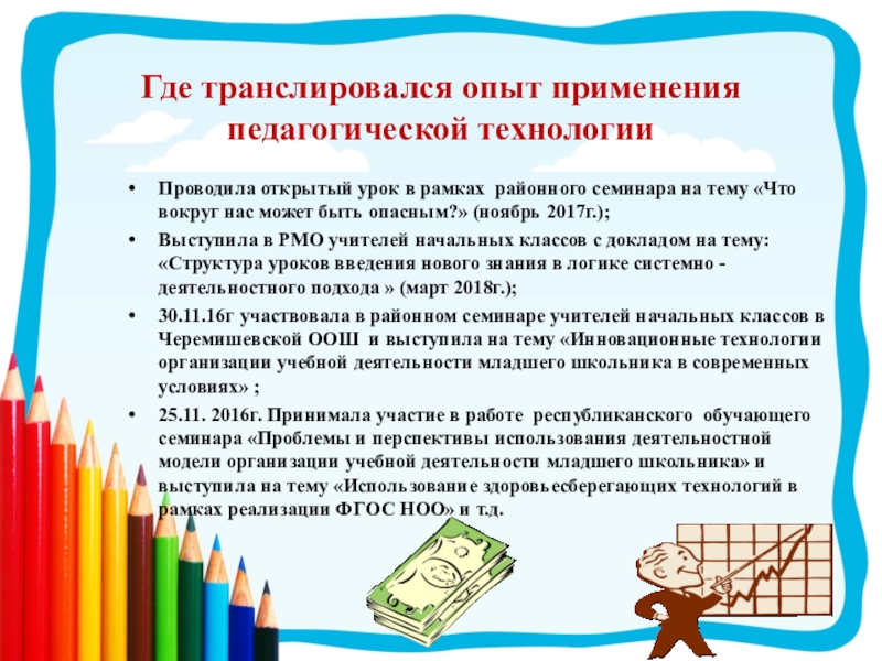Слайд 17Где транслировался опыт применения педагогической технологии