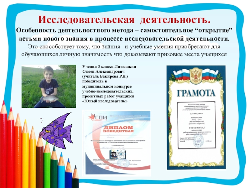 процессе исследовательской деятельности. Это способствует тому, что знания и учебные умения приобретают для обучающихся личную значимость что доказывают призовые места учащихся