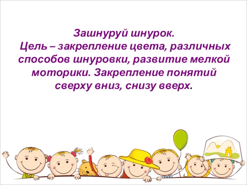 Цель – закрепление цвета, различных способов шнуровки, развитие мелкой