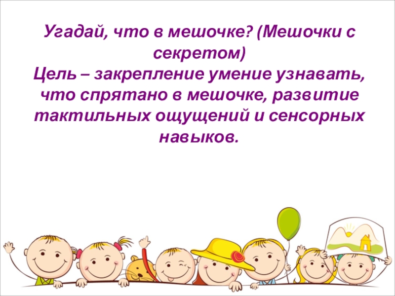 Слайд 15Угадай, что в мешочке? (Мешочки с секретом)