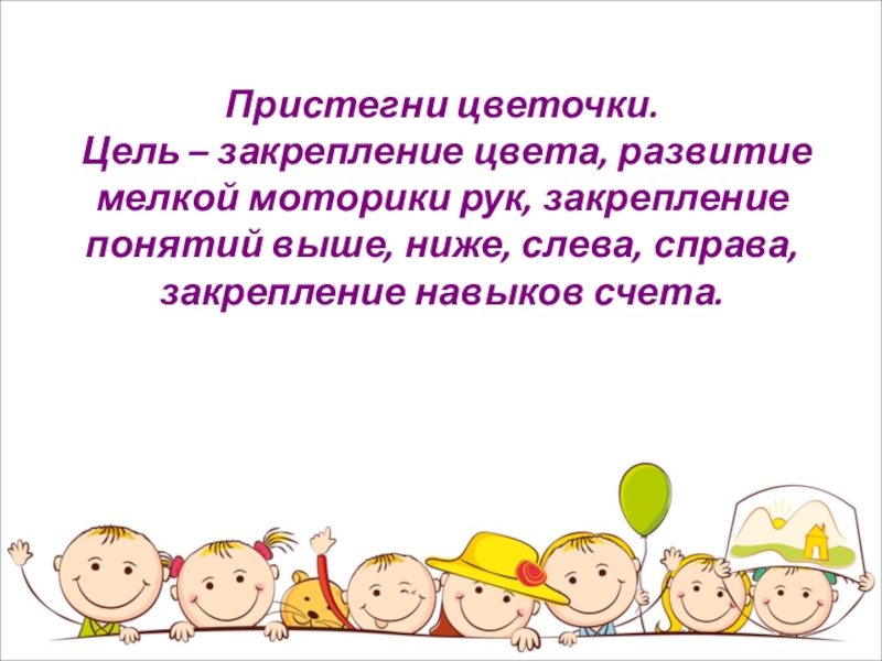 Цель – закрепление цвета, развитие мелкой моторики рук, закрепление