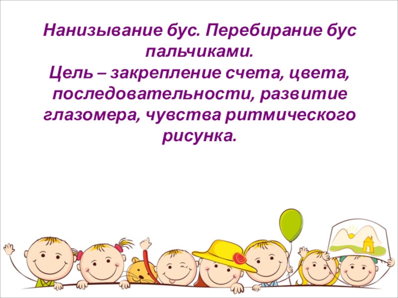 Слайд 14Нанизывание бус. Перебирание бус пальчиками.