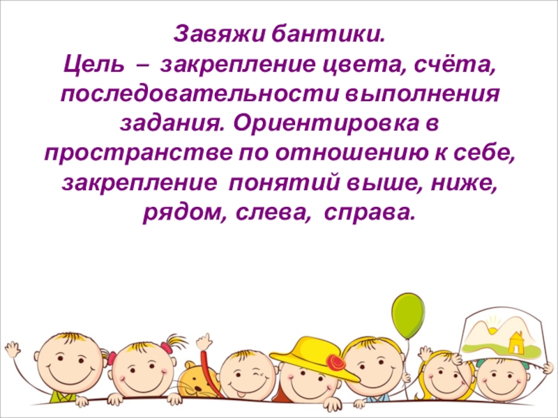 в пространстве по отношению к себе, закрепление понятий выше, ниже, рядом, слева, справа.