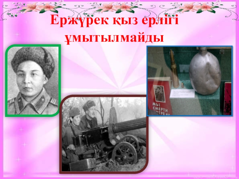 Слайд 7Ержүрек қыз ерлігі ұмытылмайды