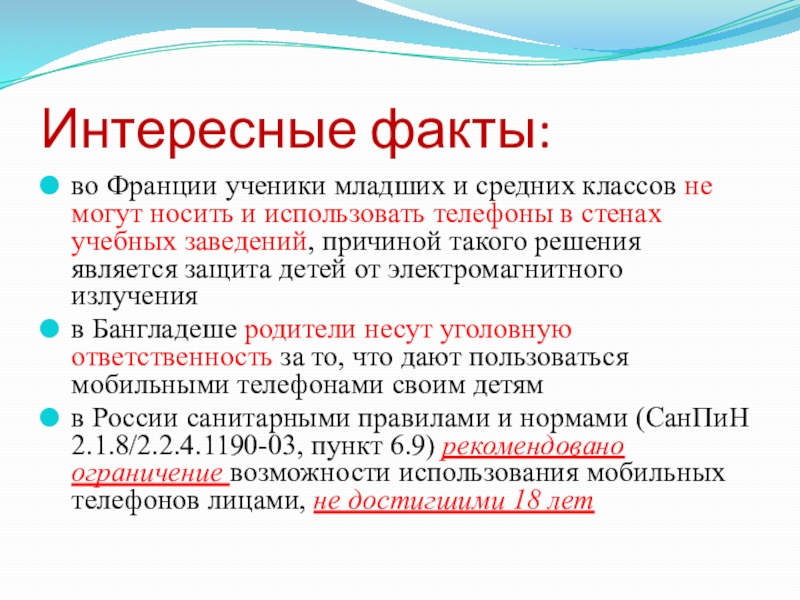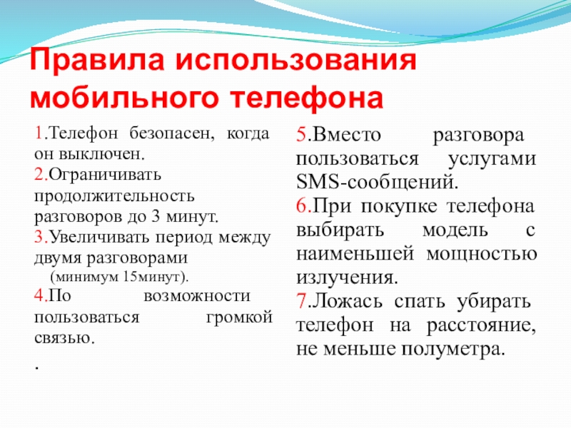6.При покупке телефона выбирать модель с наименьшей мощностью излучения.