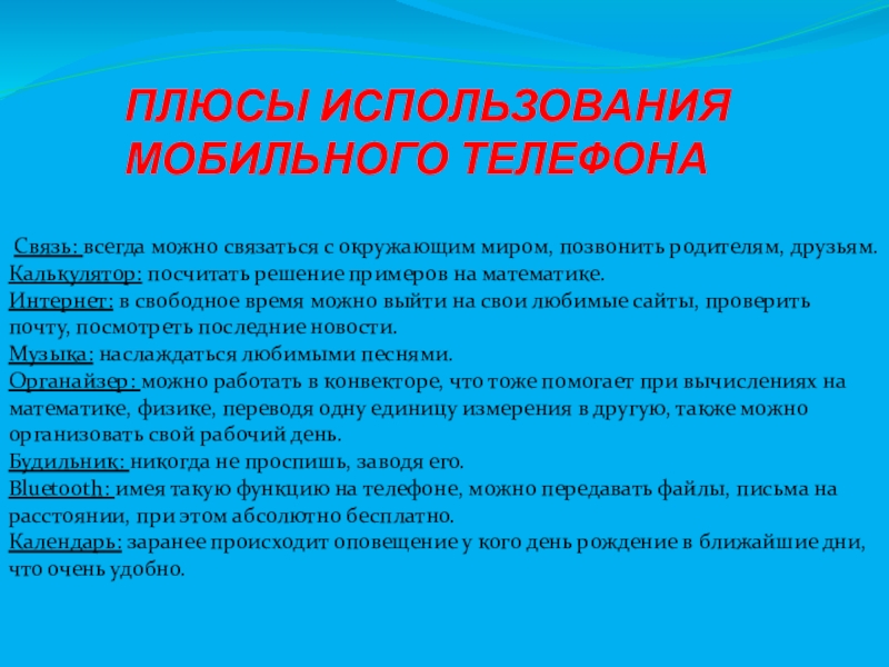 ПЛЮСЫ ИСПОЛЬЗОВАНИЯ МОБИЛЬНОГО ТЕЛЕФОНА