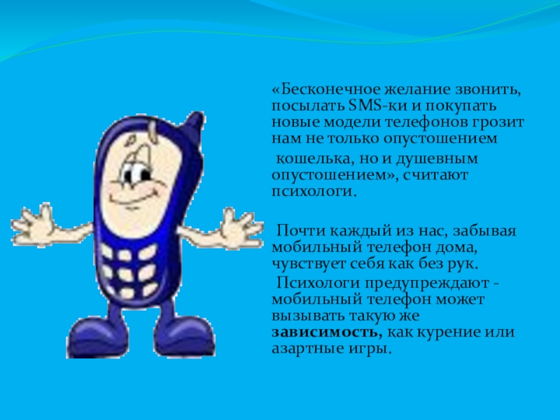 Мобильный телефон – это средство связи, которое в наше время есть практически у всех: у детей, подростков, взрослых, пожилых людей.