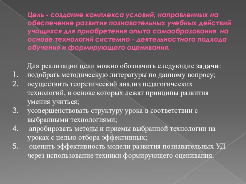 осуществить теоретический анализ педагогических технологий, в основе которых лежат принципы развития умения учиться;