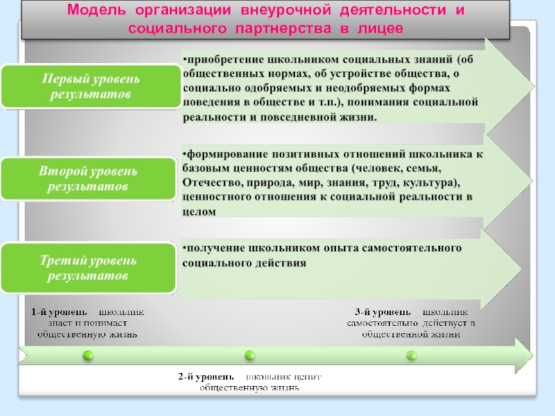 2. Идея расширения и нравственного обогащения социальных связей субъектов социального партнерства. Реализация данной идеи обогащает сферу социальных связей детей, обеспечивает их адаптацию, социальную устойчивость и активность в условиях современной жизни, повышает культурный и образовательный уровень школьников, обогащает их социальный опыт, предоставляет ребенку возможность осуществлять социальные пробы