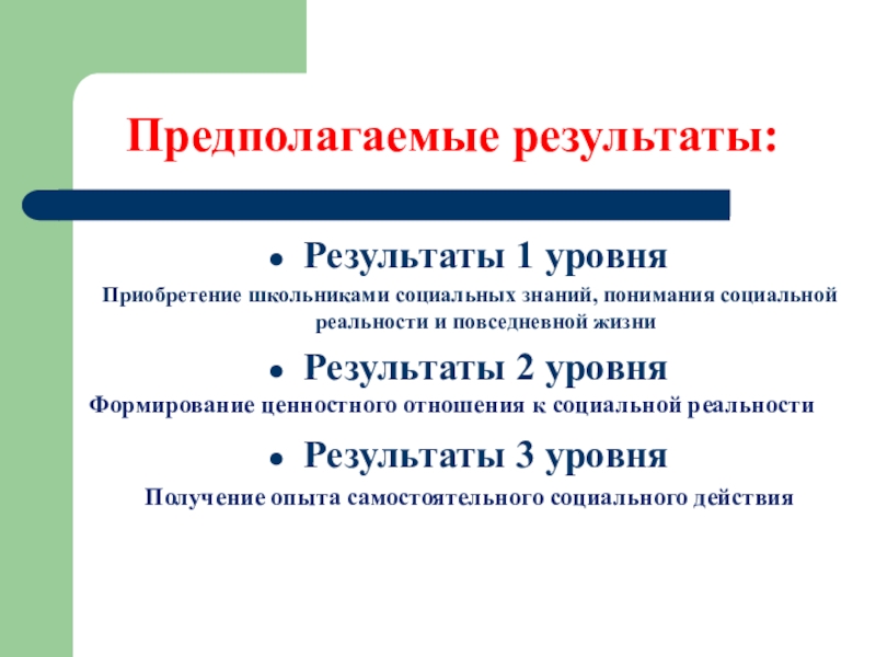 Слайд 24Уровни результатов внеурочной деятельности школьников