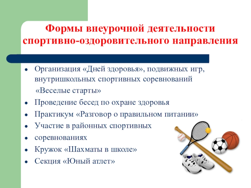 Организация «Дней здоровья», подвижных игр, внутришкольных спортивных