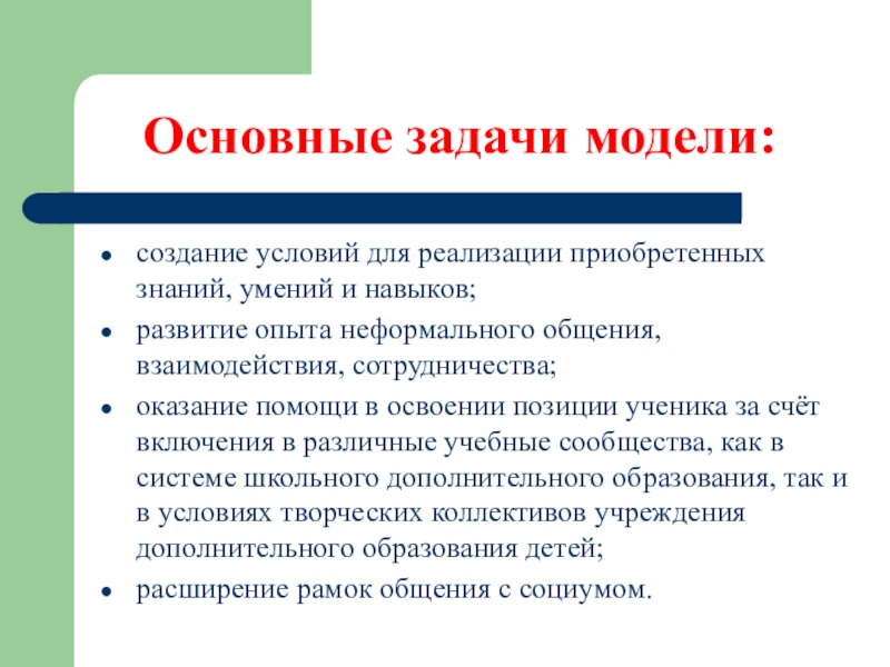 Основные задачи модели: