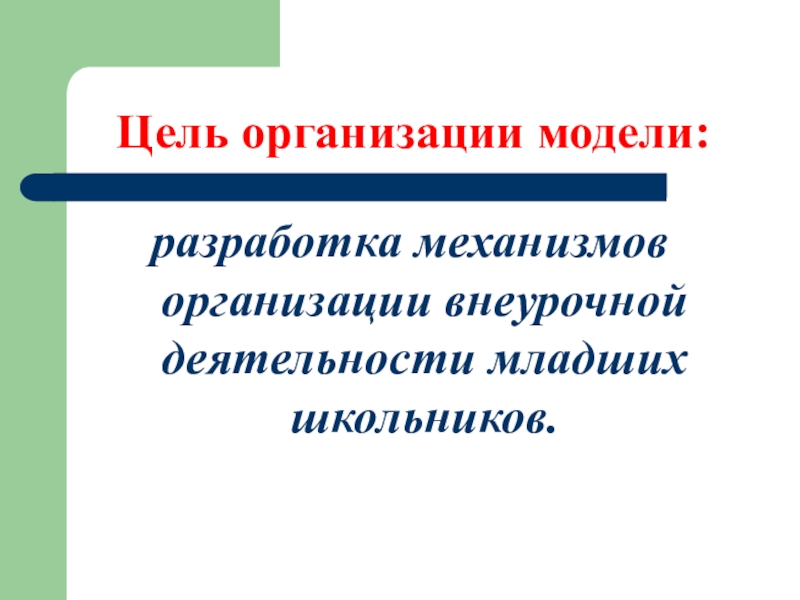 разработка механизмов организации внеурочной деятельности младших школьников.