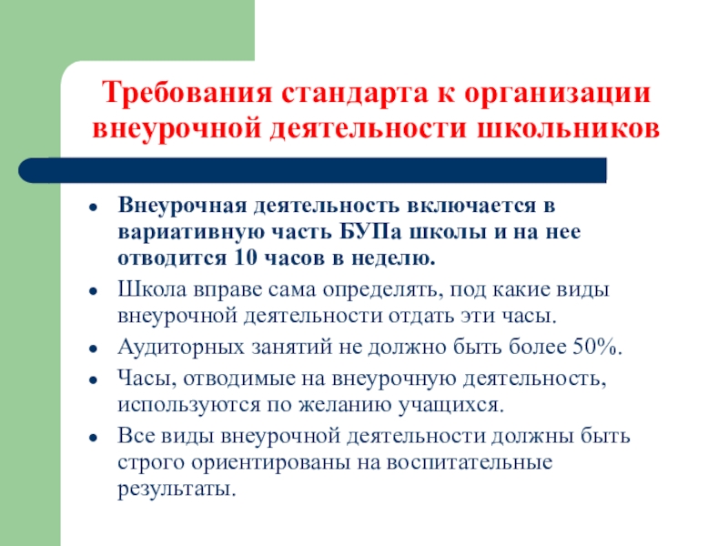 о внеурочной деятельности;