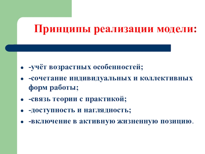 Слайд 9 Принципы реализации модели:
