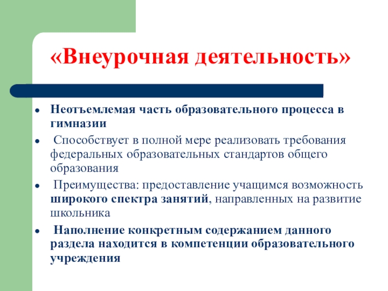 Слайд 2«Внеурочная деятельность»