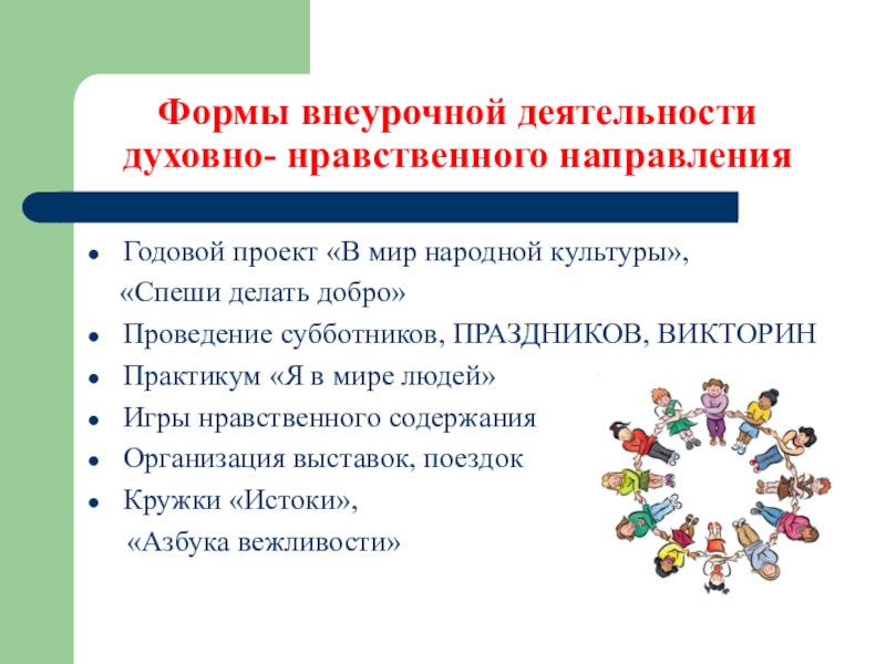 Слайд 19Формы внеурочной деятельности духовно- нравственного направления
