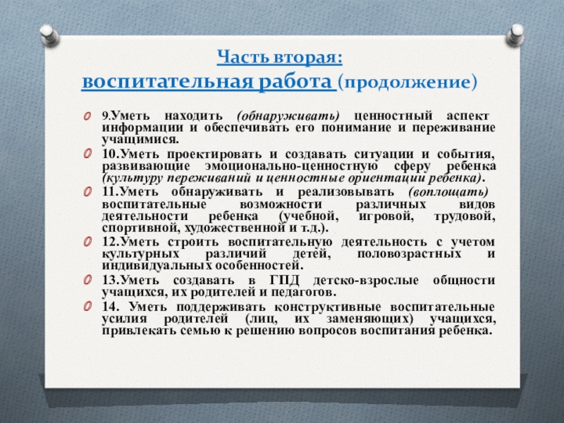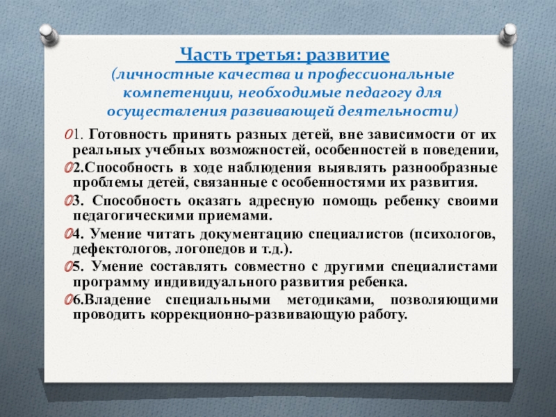 4. Умение читать документацию специалистов (психологов, дефектологов, логопедов и т.д.).